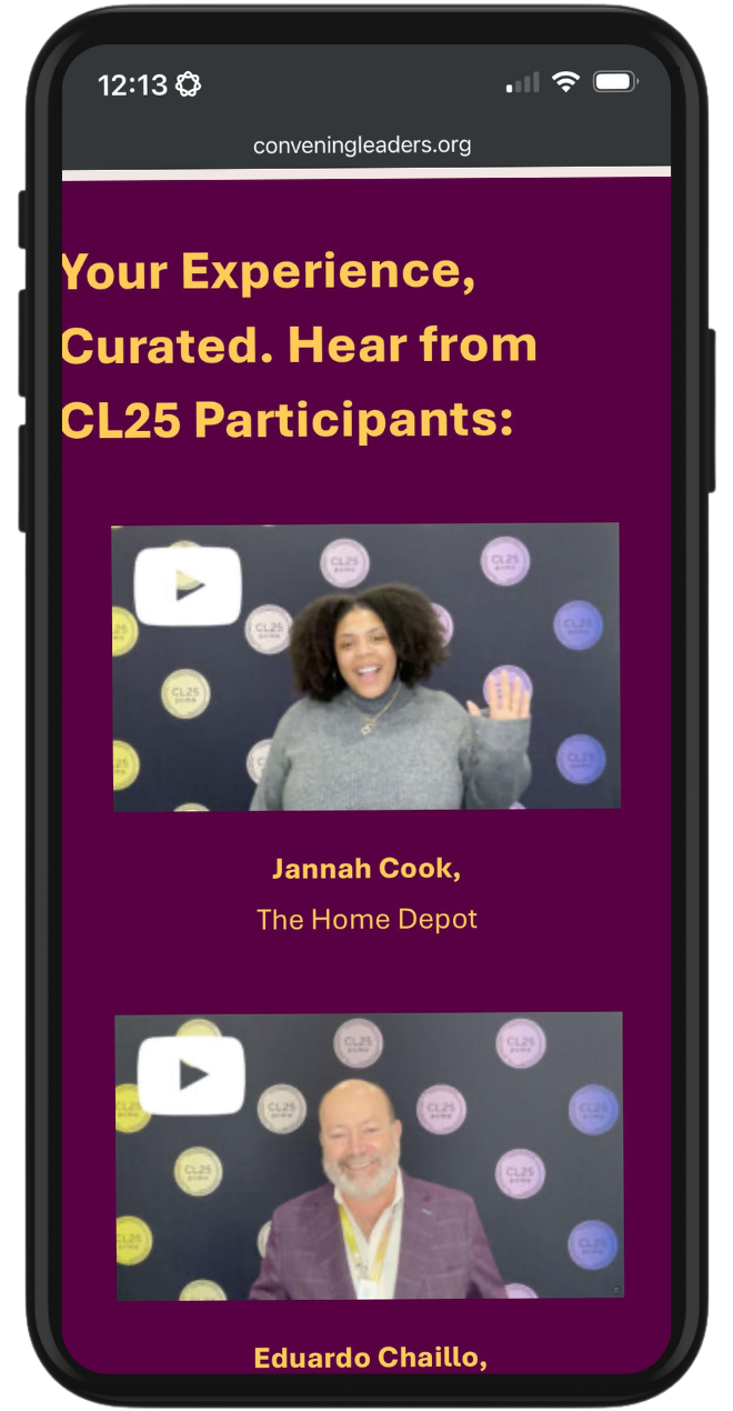From the broader library of attendee videos, PCMA selected three standout stories and gave them premium real estate on the Convening Leaders 2026 homepage, directly under the featured main stage speakers. This was more than a design choice; it was a strategic statement that: